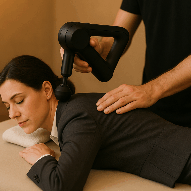Gesunde, leistungsfähige und ausgeglichene Mitarbeiter sind ein entscheidender Erfolgsfaktor für jedes Unternehmen. Mit Aktiv im Office integrieren wir praxisnahe Trainings- und Bewegungsprogramme direkt in den Arbeitsalltag – abgestimmt auf die individuellen Bedürfnisse der Mitarbeiter und das Profil der Firma. Neben Ausdauer-, Kraft- und Beweglichkeitsübungen kommt dabei auch modernste Regenerationstechnologie wie die Massagepistole zum Einsatz. Sie löst Verspannungen, verbessert die Durchblutung und unterstützt die schnelle Erholung nach Belastungen.